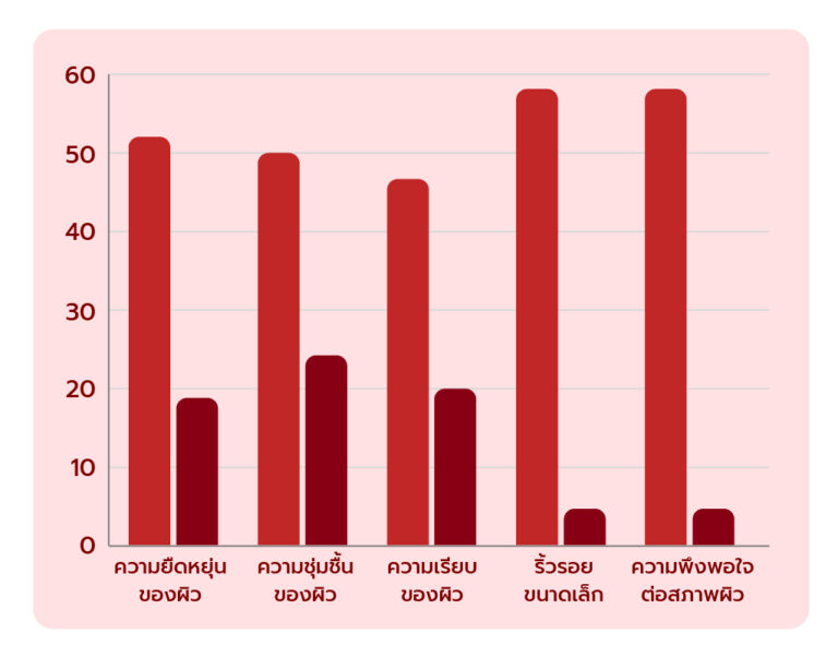 - ความยืดหยุ่นของผิว: เพิ่มขึ้นอย่างมีนัยสำคัญ